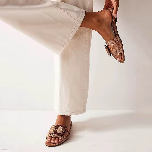 The Isla Flat is an effortless summer staple. Hand-woven raffia brings natural texture and laid-back charm, while the sleek almond-toe silhouette keeps it refined. Lightweight and versatile, this flat pairs as easily with denim as it does with airy dresses — the ultimate warm-weather essential.