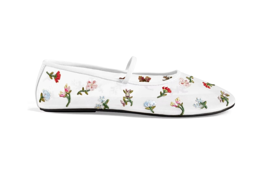 PREORDER- ETA 3-4 weeks from order.  Accommodates wide feet. The Elise Ballet Flat brings a romantic twist to everyday dressing. Crafted with soft mesh and delicate floral detailing, this flat offers breathable comfort with an elegant edge. Designed in a classic ballet silhouette with a flexible sole, it’s the perfect slip-on for both casual days and dressed-up moments. Floral mesh with embroidered detailing Classic ballet flat silhouette Lightweight, breathable, and versatile Cushioned sole for all-day wear